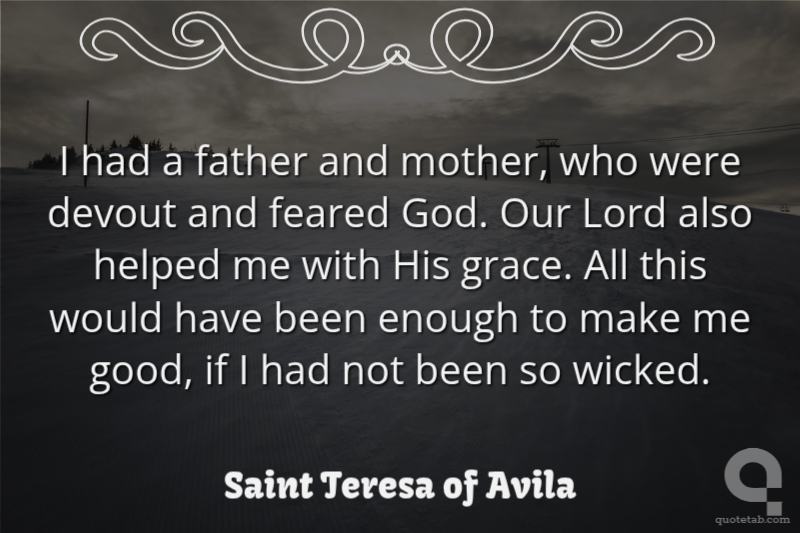 I had a father and mother, who were devout and feared God. Our Lord also helped me with His grace. All this would have been enough to make me good, if I had not been so wicked. Saint Teresa of Avila
