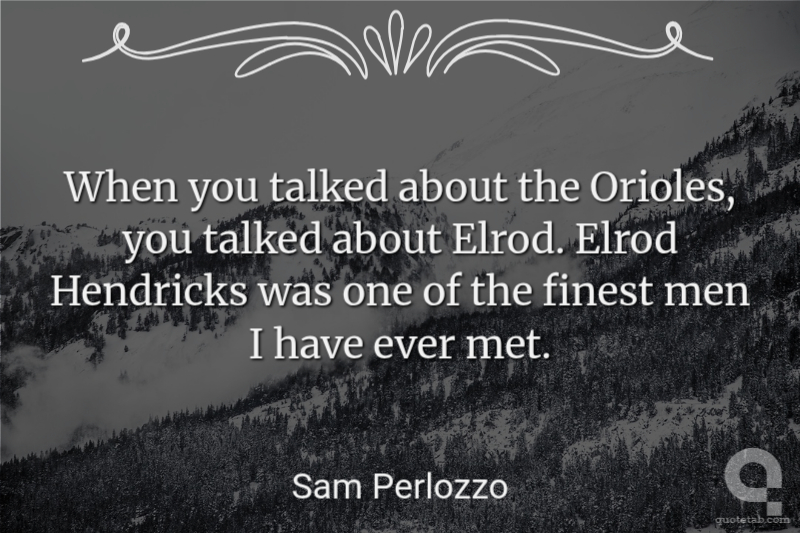 When you talked about the Orioles, you talked about Elrod. Elrod Hendricks was one of the finest men I have ever met. Sam Perlozzo