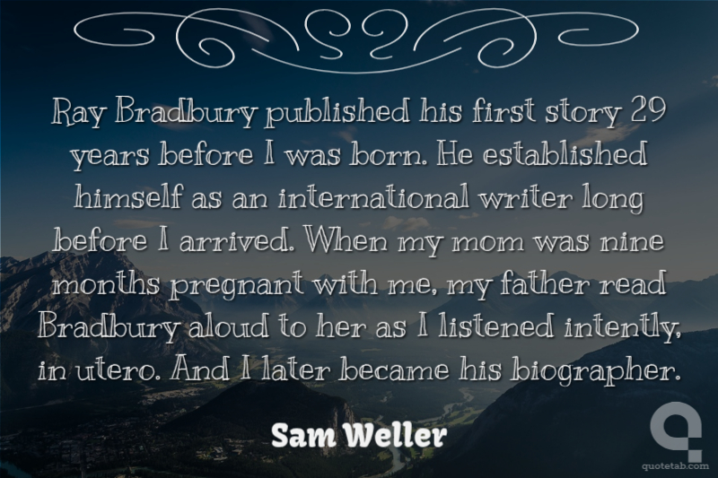 Ray Bradbury published his first story 29 years before I was born. He established himself as an international writer long before I arrived. When my mom was nine months pregnant with me, my father read Bradbury aloud to her as I listened intently, in utero. And I later became his biographer. Sam Weller