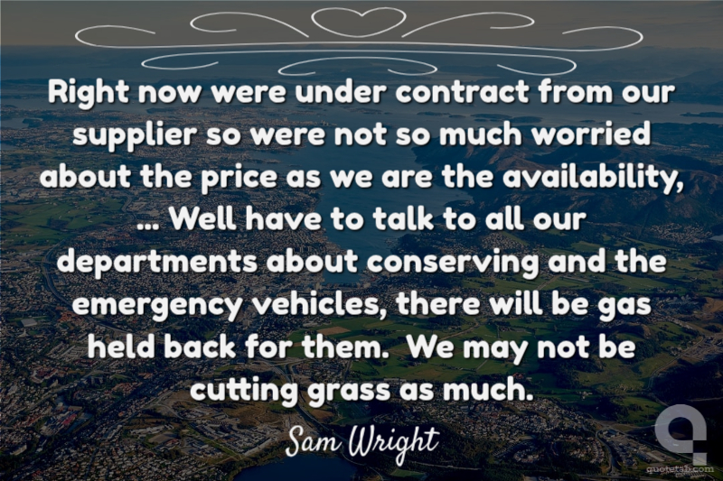 Right now were under contract from our supplier so were not so much worried about the price as we are the availability, ... Well have to talk to all our departments about conserving and the emergency vehicles, there will be gas held back for them. We may not be cutting grass as much. Sam Wright