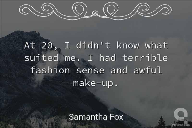 At 20, I didn't know what suited me. I had terrible fashion sense and awful make-up. Samantha Fox