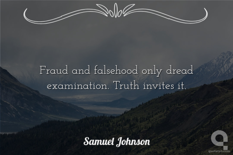 Fraud and falsehood only dread examination. Truth invites it. Samuel Johnson