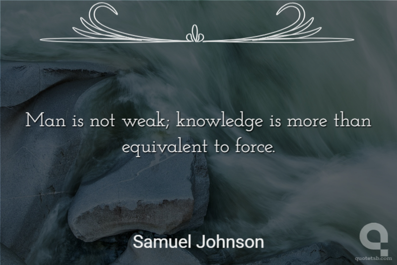 Man is not weak; knowledge is more than equivalent to force. Samuel Johnson