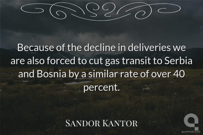 Because of the decline in deliveries we are also forced to cut gas transit to Serbia and Bosnia by a similar rate of over 40 percent. Sandor Kantor