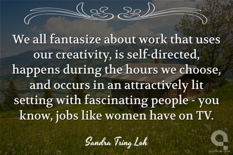We all fantasize about work that uses our creativity, is self-directed, happens during the hours we choose, and occurs in an attractively lit setting with fascinating people - you know, jobs like women have on TV. Sandra Tsing Loh