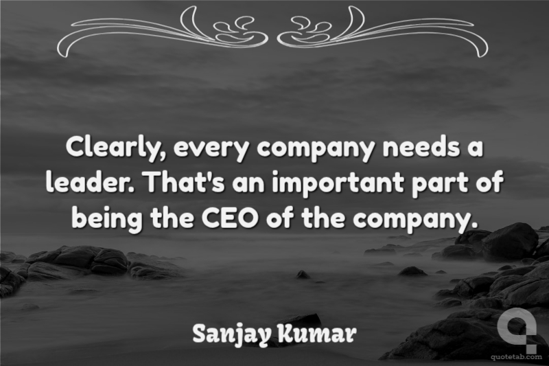 Clearly, every company needs a leader. That's an important part of being the CEO of the company. Sanjay Kumar