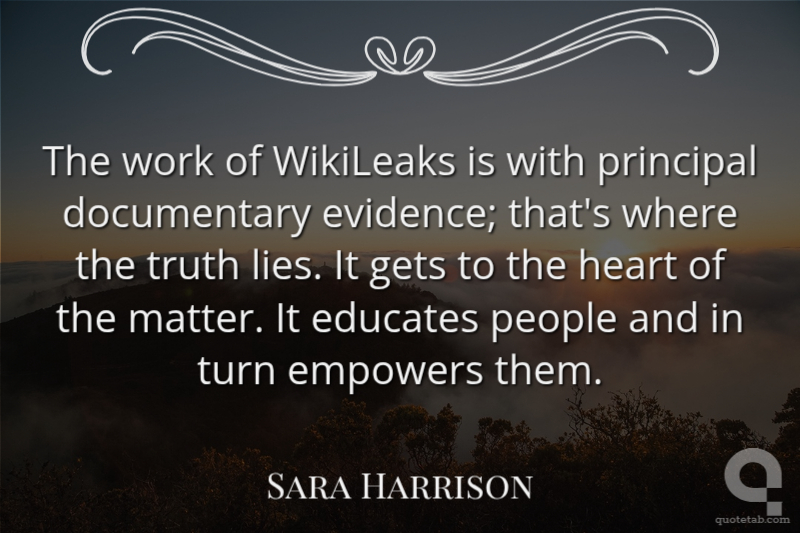 The work of WikiLeaks is with principal documentary evidence; that's where the truth lies. It gets to the heart of the matter. It educates people and in turn empowers them. Sara Harrison