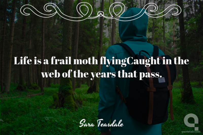 Life is a frail moth flyingCaught in the web of the years that pass. Sara Teasdale