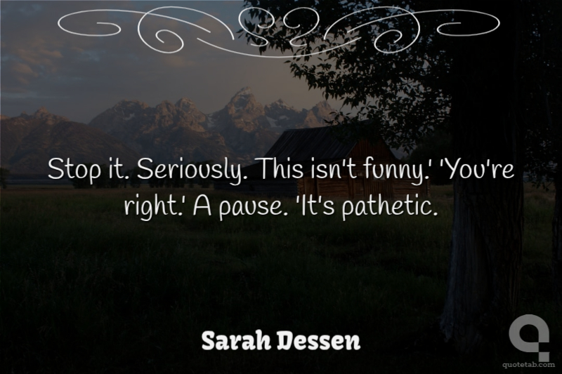 Stop it. Seriously. This isn't funny.' 'You're right.' A pause. 'It's pathetic. Sarah Dessen