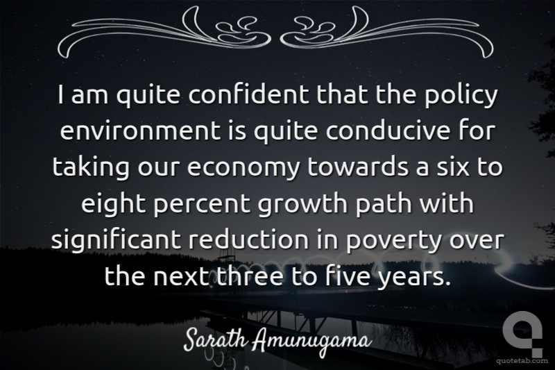 I am quite confident that the policy environment is quite conducive for taking our economy towards a six to eight percent growth path with significant reduction in poverty over the next three to five years. Sarath Amunugama