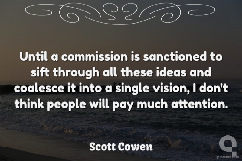 Until a commission is sanctioned to sift through all these ideas and coalesce it into a single vision, I don't think people will pay much attention. Scott Cowen