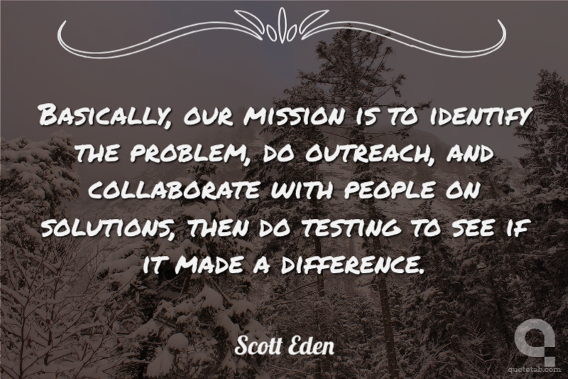 Basically, our mission is to identify the problem, do outreach, and collaborate with people on solutions, then do testing to see if it made a difference. Scott Eden