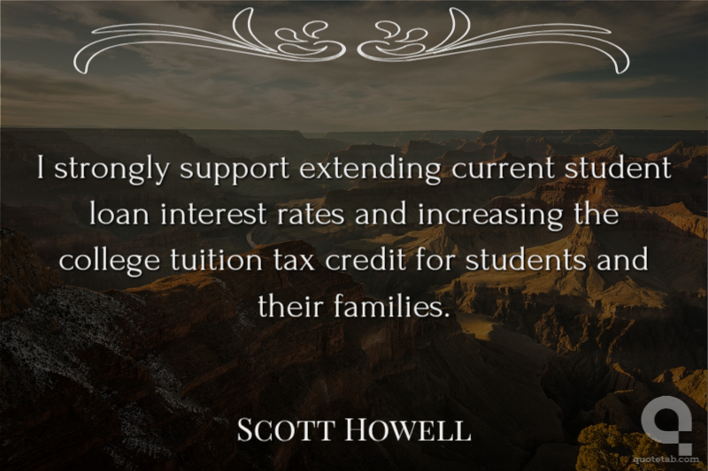 I strongly support extending current student loan interest rates and increasing the college tuition tax credit for students and their families. Scott Howell