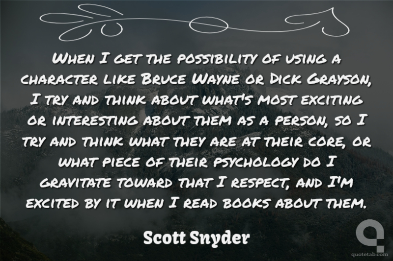 When I get the possibility of using a character like Bruce Wayne or Dick Grayson, I try and think about what's most exciting or interesting about them as a person, so I try and think what they are at their core, or what piece of their psychology do I gravitate toward that I respect, and I'm excited by it when I read books about them. Scott Snyder
