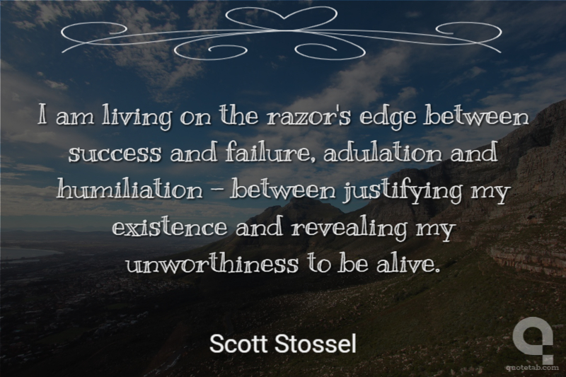 I am living on the razor's edge between success and failure, adulation and humiliation - between justifying my existence and revealing my unworthiness to be alive. Scott Stossel