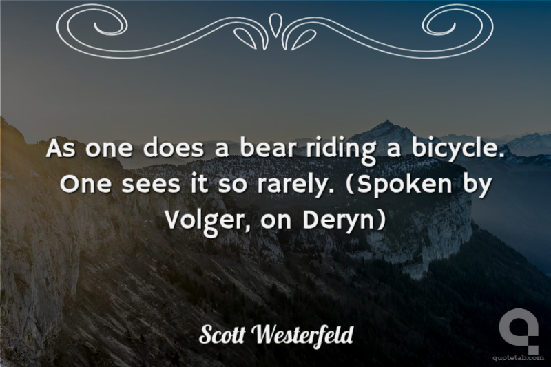 As one does a bear riding a bicycle. One sees it so rarely. (Spoken by Volger, on Deryn) Scott Westerfeld