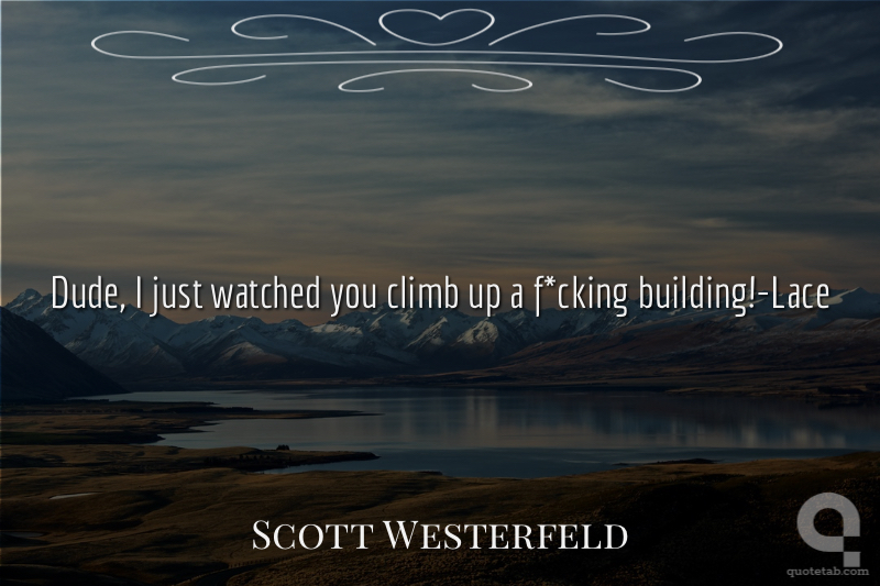 Dude, I just watched you climb up a f*cking building!-Lace Scott Westerfeld