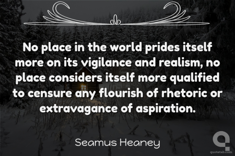 No place in the world prides itself more on its vigilance and realism, no place considers itself more qualified to censure any flourish of rhetoric or extravagance of aspiration. Seamus Heaney