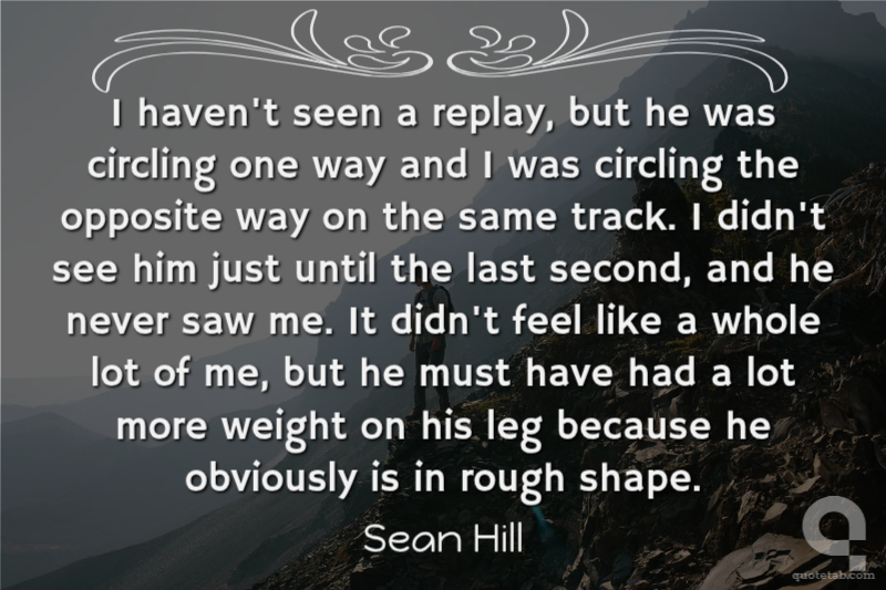 I haven't seen a replay, but he was circling one way and I was circling the opposite way on the same track. I didn't see him just until the last second, and he never saw me. It didn't feel like a whole lot of me, but he must have had a lot more weight on his leg because he obviously is in rough shape. Sean Hill