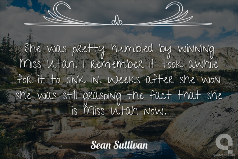 She was pretty humbled by winning Miss Utah. I remember it took awhile for it to sink in. Weeks after she won she was still grasping the fact that she is Miss Utah now. Sean Sullivan