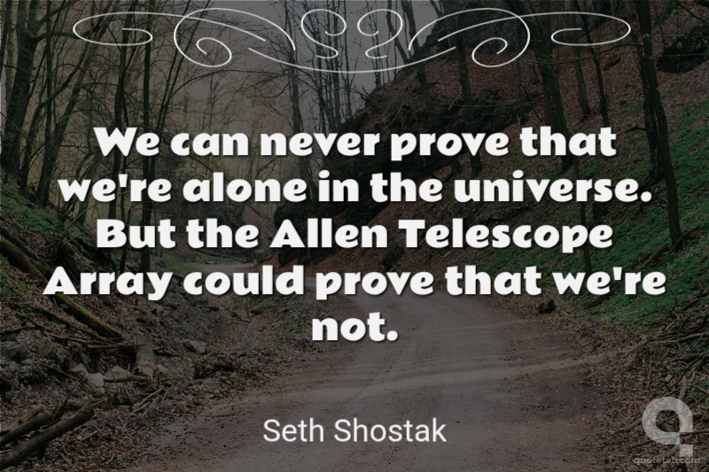 We can never prove that we're alone in the universe. But the Allen Telescope Array could prove that we're not. Seth Shostak