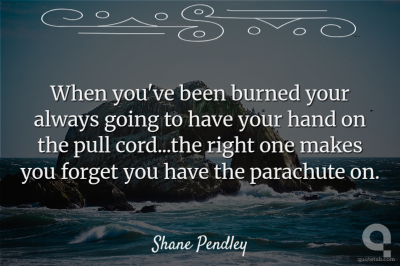 When you've been burned your always going to have your hand on the pull cord...the right one makes you forget you have the parachute on. Shane Pendley
