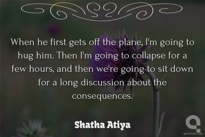 When he first gets off the plane, I'm going to hug him. Then I'm going to collapse for a few hours, and then we're going to sit down for a long discussion about the consequences. Shatha Atiya