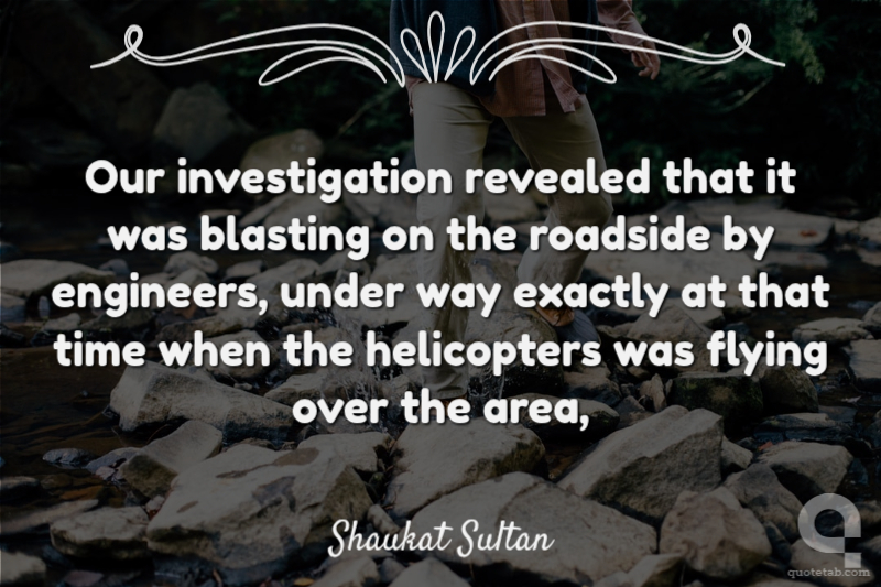 Our investigation revealed that it was blasting on the roadside by engineers, under way exactly at that time when the helicopters was flying over the area, Shaukat Sultan