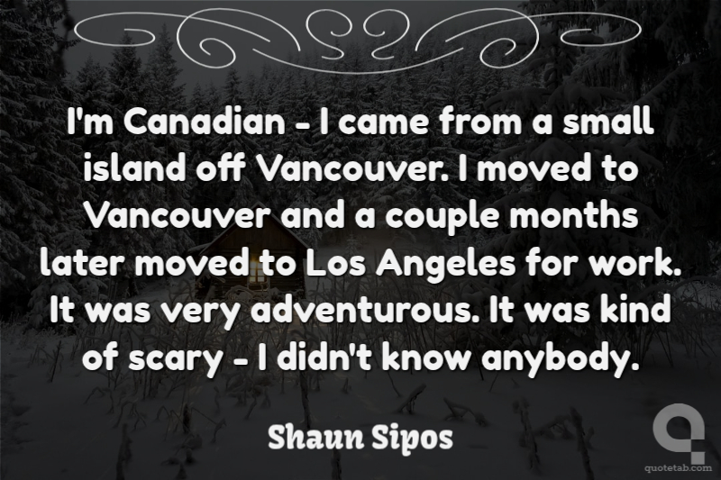 I'm Canadian - I came from a small island off Vancouver. I moved to Vancouver and a couple months later moved to Los Angeles for work. It was very adventurous. It was kind of scary - I didn't know anybody. Shaun Sipos