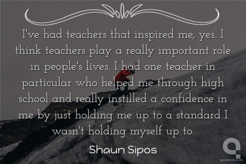 I've had teachers that inspired me, yes. I think teachers play a really important role in people's lives. I had one teacher in particular who helped me through high school and really instilled a confidence in me by just holding me up to a standard I wasn't holding myself up to. Shaun Sipos