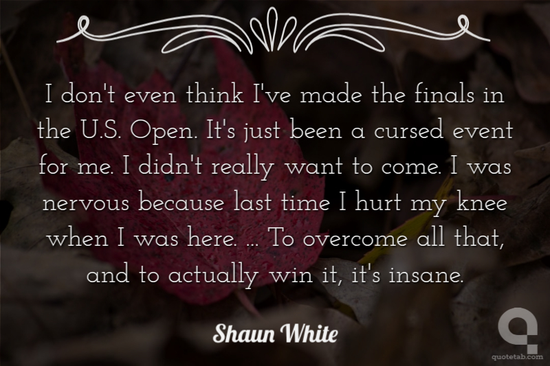 I don't even think I've made the finals in the U.S. Open. It's just been a cursed event for me. I didn't really want to come. I was nervous because last time I hurt my knee when I was here. ... To overcome all that, and to actually win it, it's insane. Shaun White