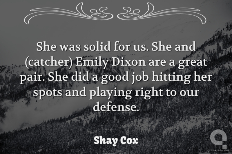 She was solid for us. She and (catcher) Emily Dixon are a great pair. She did a good job hitting her spots and playing right to our defense. Shay Cox