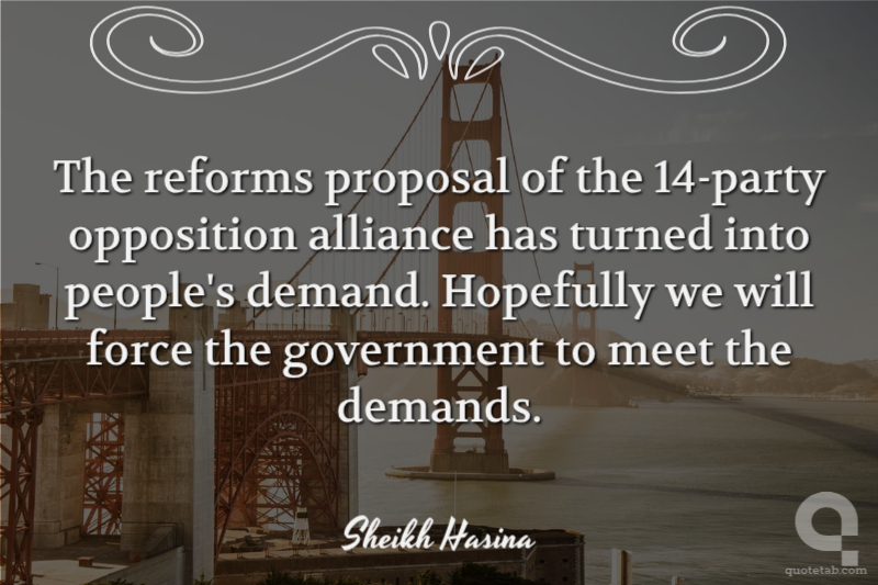 The reforms proposal of the 14-party opposition alliance has turned into people's demand. Hopefully we will force the government to meet the demands. Sheikh Hasina