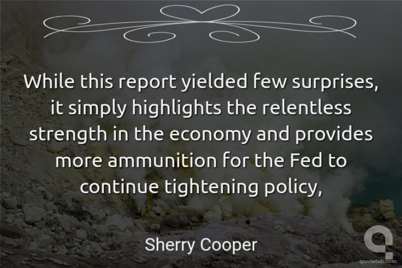 While this report yielded few surprises, it simply highlights the relentless strength in the economy and provides more ammunition for the Fed to continue tightening policy, Sherry Cooper