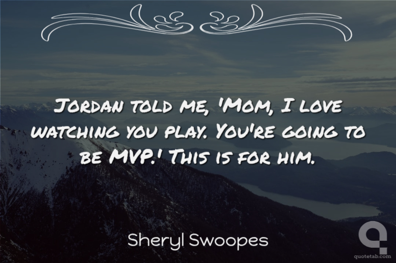 Jordan told me, 'Mom, I love watching you play. You're going to be MVP.' This is for him. Sheryl Swoopes