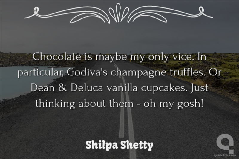 Chocolate is maybe my only vice. In particular, Godiva's champagne truffles. Or Dean & Deluca vanilla cupcakes. Just thinking about them - oh my gosh! Shilpa Shetty