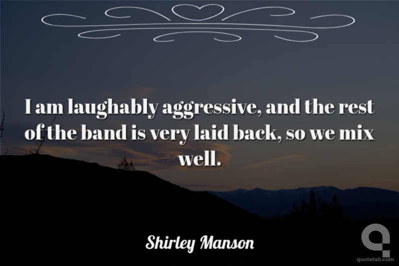 I am laughably aggressive, and the rest of the band is very laid back, so we mix well. Shirley Manson