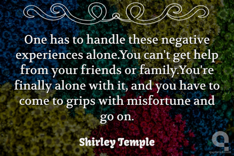 One has to handle these negative experiences alone.You can't get help from your friends or family.You're finally alone with it, and you have to come to grips with misfortune and go on. Shirley Temple