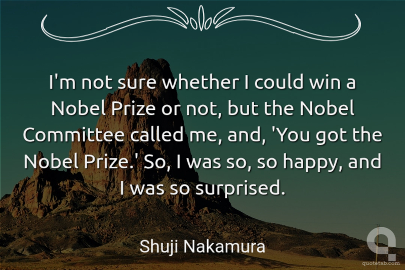 I'm not sure whether I could win a Nobel Prize or not, but the Nobel Committee called me, and, 'You got the Nobel Prize.' So, I was so, so happy, and I was so surprised. Shuji Nakamura