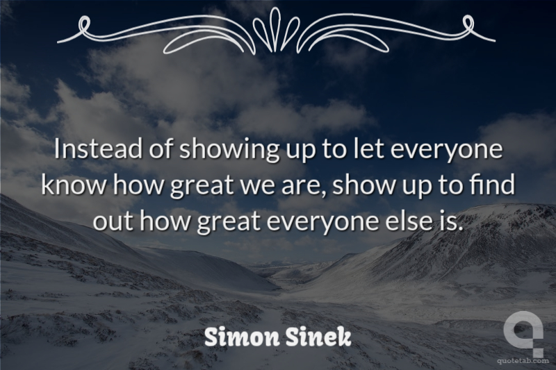 Instead of showing up to let everyone know how great we are, show up to find out how great everyone else is. Simon Sinek