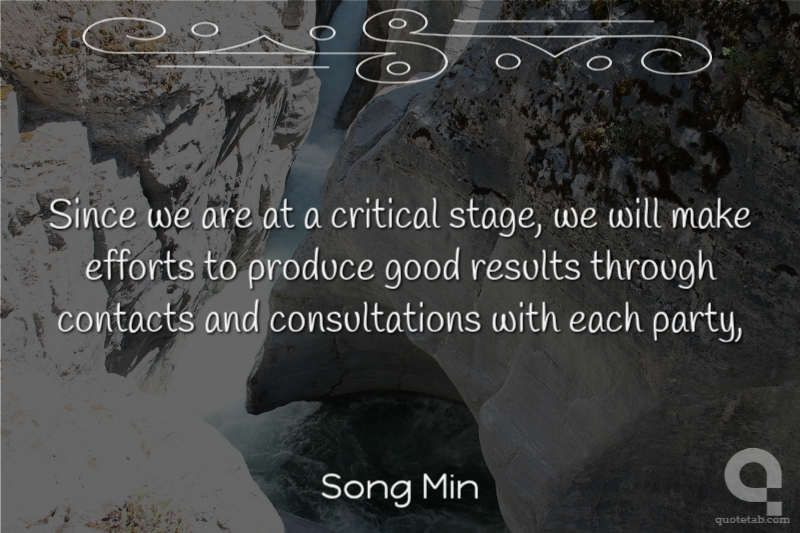 Since we are at a critical stage, we will make efforts to produce good results through contacts and consultations with each party, Song Min