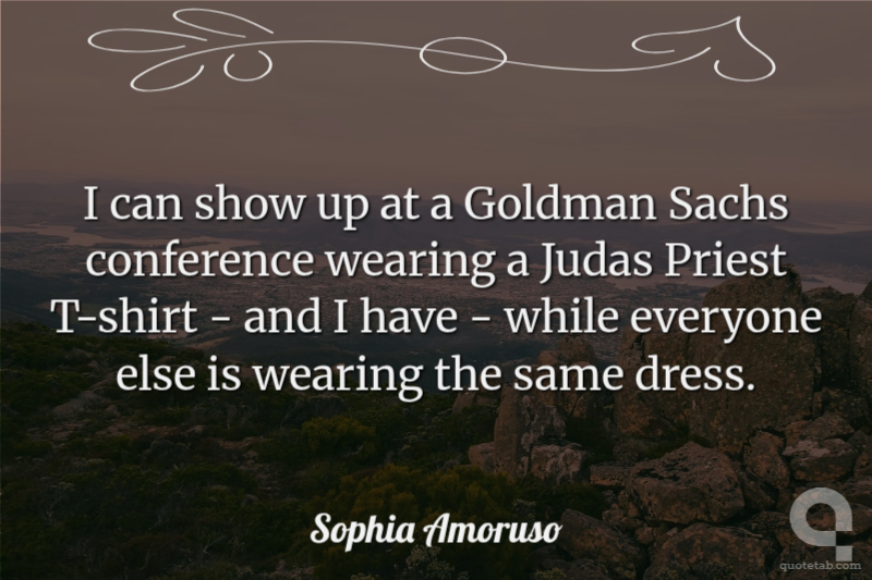 I can show up at a Goldman Sachs conference wearing a Judas Priest T-shirt - and I have - while everyone else is wearing the same dress. Sophia Amoruso
