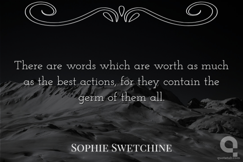 There are words which are worth as much as the best actions, for they contain the germ of them all. Sophie Swetchine