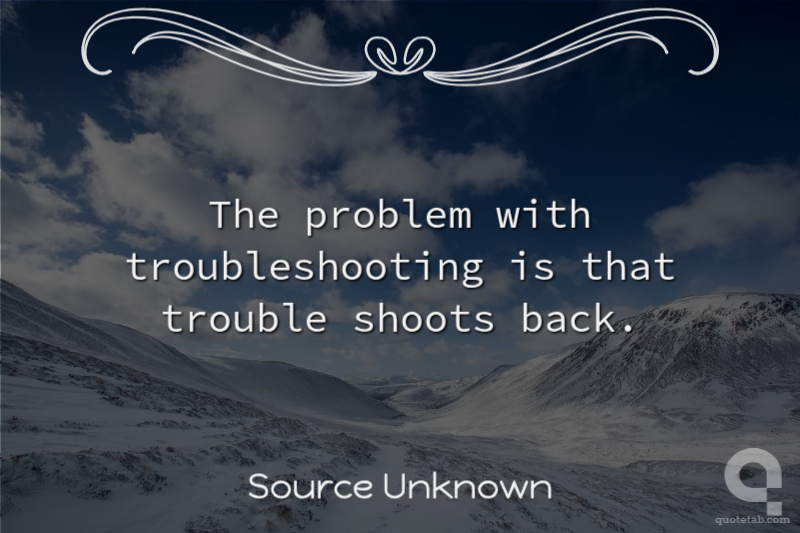 The problem with troubleshooting is that trouble shoots back. Source Unknown
