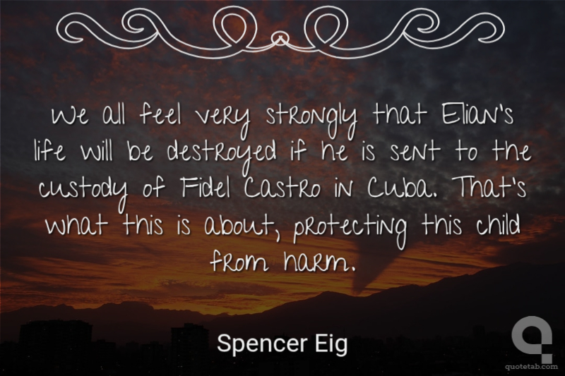 We all feel very strongly that Elian's life will be destroyed if he is sent to the custody of Fidel Castro in Cuba. That's what this is about, protecting this child from harm. Spencer Eig