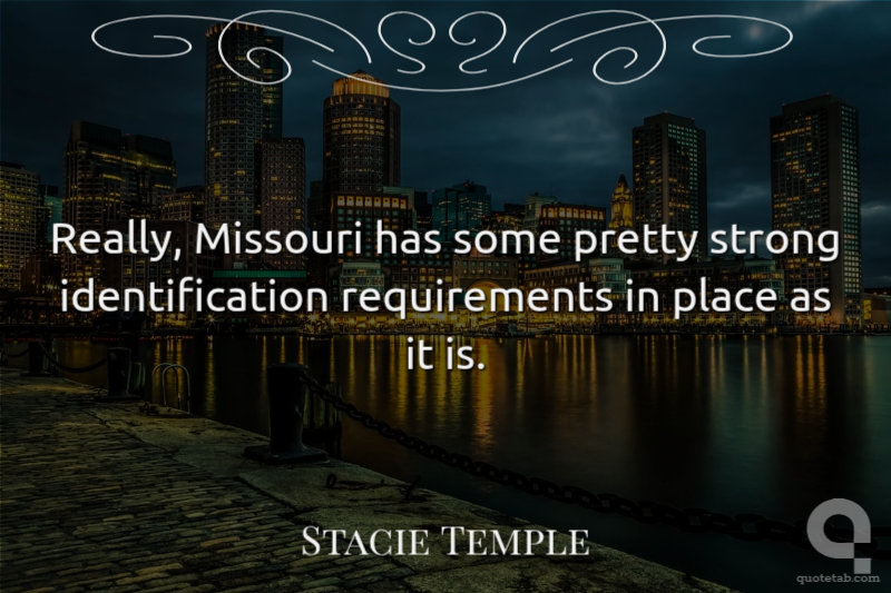 Really, Missouri has some pretty strong identification requirements in place as it is. Stacie Temple