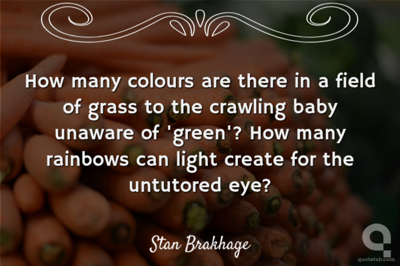 How many colours are there in a field of grass to the crawling baby unaware of 'green'? How many rainbows can light create for the untutored eye? Stan Brakhage