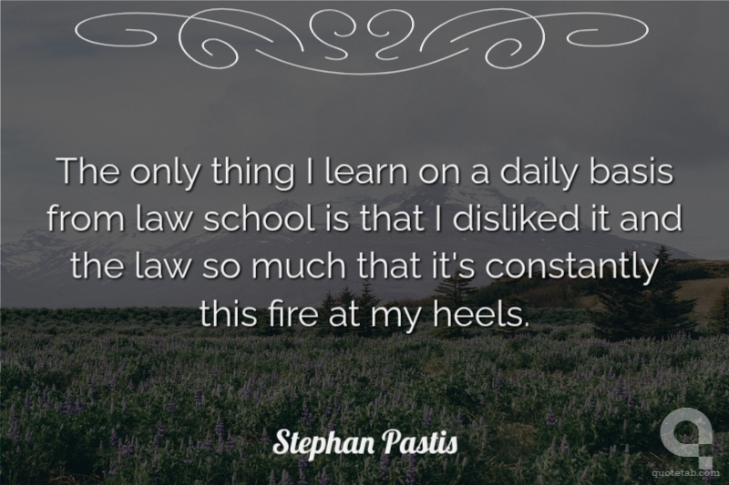The only thing I learn on a daily basis from law school is that I disliked it and the law so much that it's constantly this fire at my heels. Stephan Pastis
