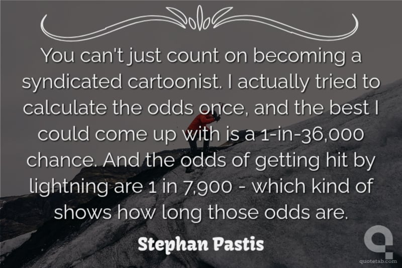 You can't just count on becoming a syndicated cartoonist. I actually tried to calculate the odds once, and the best I could come up with is a 1-in-36,000 chance. And the odds of getting hit by lightning are 1 in 7,900 - which kind of shows how long those odds are. Stephan Pastis