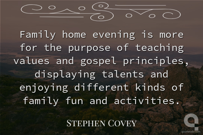 Family home evening is more for the purpose of teaching values and gospel principles, displaying talents and enjoying different kinds of family fun and activities. Stephen Covey